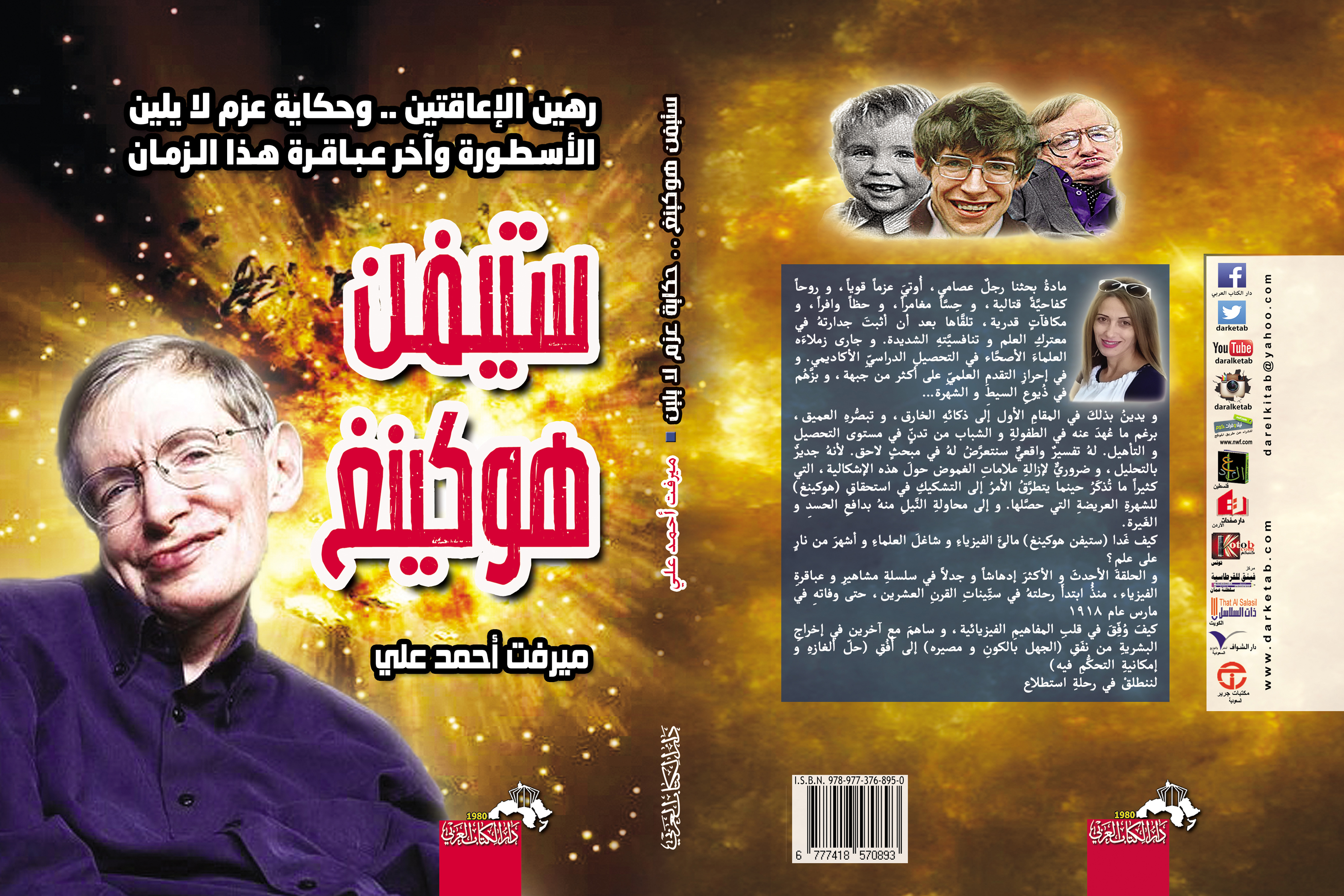 في معرض القاهرة الدولي للكتاب2019، يُعرض في الصالة الأولى، الجناح A38 ، كتابٌ جديد بعنوان (ستيفن هوكينغ، رهينُ الإعاقتين…و حكايةُ عزمٍ لا يلين)، تأليف الأديبة و الباحثة السورية (ميرفت أحمد علي)، و الصادر قُبيلَ معرض الكتاب بأيام، عن (دار الكتاب العربي) في القاهرة. متناولاً النظريات العلمية التي اكتشفَها العالم الفيزيائي الشهير (ستيفن هوكينغ)، في إطار جهودهِ الفكرية و البحثية لمعرفة لغز الكون، و تطوُّر الوجود بمكوِّناته المادية و البشرية عبرَ عشرة بلايين عام. في قراءةٍ فلسفية عميقة الرؤية ، واسعةِ الطيف و المنظور للعالَم. شكَّلت و ما تزال إضافةً غنيةً للمُعطى العلمي. و توَّجتْ الفيزياء الحديثة بآخر المستجدات و الأفكار النوعيَّة، التي لم يسبق أن قاربَها عالِمٌ أو فيلسوف قبلَ الباحث الشهير البريطاني الجنسية (ستيفن هوكينغ).