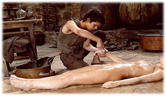 وبحكم أن الفيلم الذي اخترنا مقاربته مستوحى من رواية عميقة حول الوضع الإنساني تحمل نفس الاسم “العطر” للروائي “باتريك زوسكيند” (1)، فقد ترامى المتخيل الروائي على السرد السينمائي وانعكس إيجابا في إنعاش السيناريو الفيلمي (2)، كما ألحّ على الصورة، بأن تبلّغ ما يعجز عنه السرد الحكائي القولي لوحده. فالفيلم عادة يعتمد على جذب المشاهد بصريا – من خلال الولوج إلى فضاء الصورة – قبل أن يتورّط عاطفيا أو ما شابه ذلك في مجريات الأحداث. بينما الرواية تحرُس على تعليق القارئ عاطفيا بكلّ حدث ليرسمه كما يشاء، فيتصوّره وفقا لحدود مخيّلته. وفي هذه المغامرة – أي نقل المحكي (الرواية) إلى المرئي (الفيلم) – استطاع المخرج أن يُبرهن أنّه من المخرجين المتمكّنين في إبراز الصور الفكرية سواء البشعة (الوحشية) أو الجمالية (المتسامية)، ورميها في معترك النظرة والتّمرئي والفتنة البصرية، باعتماد طريقة التمثيل السينمائي التجسيدي الذي يغذّي الاستفزاز الموفور في الصور، كفن تصويري جديد للوصول إلى الفكرة في الفيلم. ناهيك عن أن تيمة العطر قلّ ما جسدت في الفن السابع بالنظر لصعوبة تعامل الوسط الصوري معها (3).