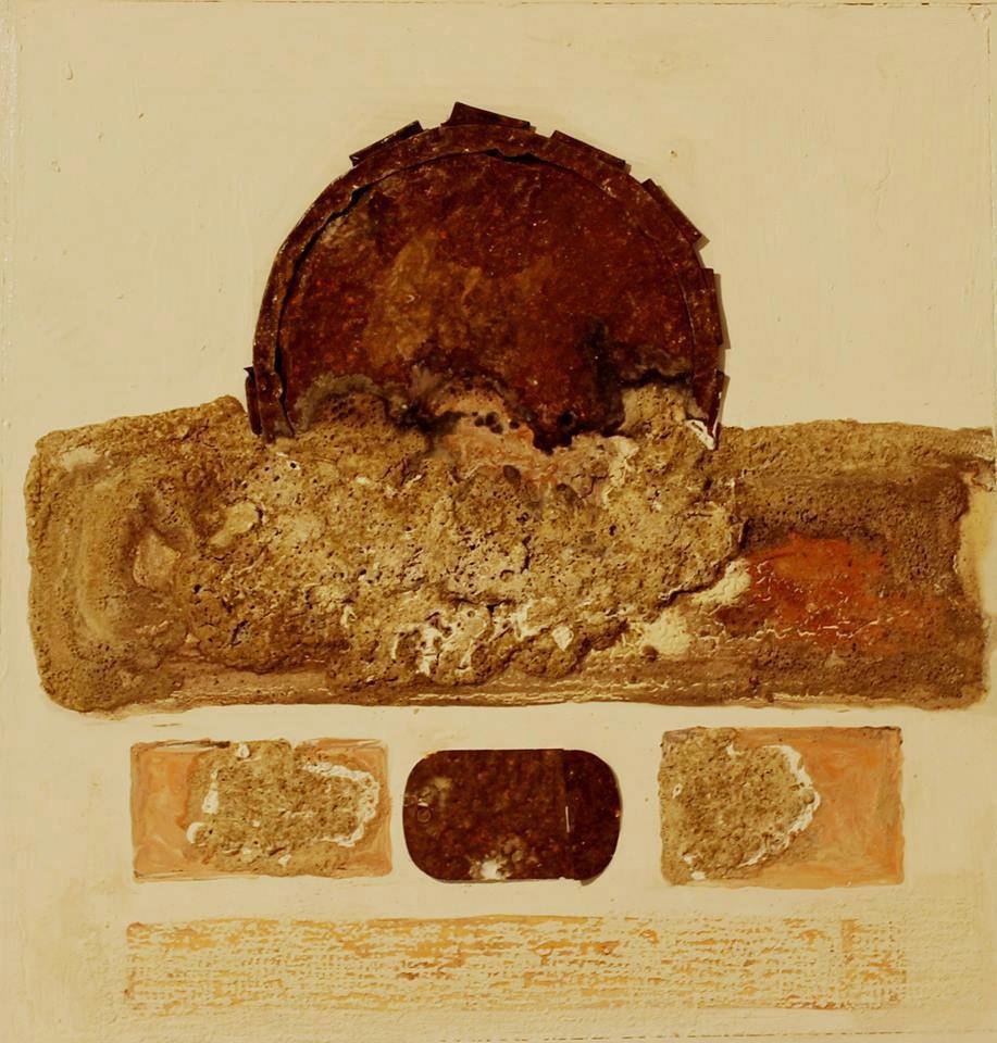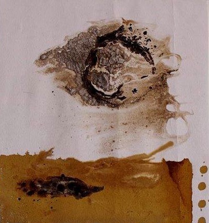 فبعد أن تسحق علب المواد المختلفة المعدنية تحت عجلات السيارات وتفقد أبعادها الثلاثية وحضوره الشكلي و اللوني السابق لتصبح صدئة متهرئة اجمعها كمن يجمع كنزا منبهرة بكل تلك التأثرات التي أحدثها الزمن والطقس والإنسان عليها ، كما إستهوتني قشور الرمان التي كانت أمي تجمعها دائما بعد الانتهاء من فرز حبات الرمان منها و شميسها وحفظها لما لها من فوائد كثيرة صحية على حد رأيها، ولأن شجرة الرمان لطالما كانت موجودة بحديقة المنزل ولي معها ذكريات كثيرة، كما اجمع كل بواقي الخامات البيئية التي من حولي من حديقة منزلي والشوارع المحيطة ومؤخرا صرت أتنقل إلى مصب قمامة كبير يلقي فيه المواطنون بقايا الأشياء القديمة والمنتهية صلوحيتها لديهم لاقتات منها منابع اشتغالي، حيث أعتمد أيضا على صمغ الحيوانات الذي يجهزه لي أبي خصيصا لتصبح خاماتي مختلفة المنابع والتأثيرات والمراجع.