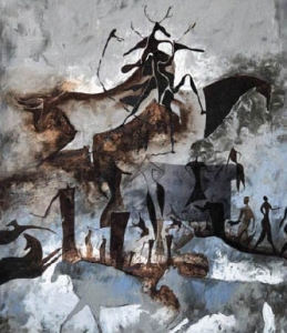 الفنان التشكيلي مبارك عمان، فنان متلهف ومتحمس إلى اللون والمادة. يسافر بنا في أعماله – التي خصص لها تيمة (إنسان ما قبل التاريخ)- إلى أبعد زمن عرف فيه الإنسان التناغم بين اللون (أداة الرمز الأولى) والطبيعة. موظفا أنغام الأرض وألوانها في كيمياء ساحرة.. مبهرة.. ومتسائلة.. إنه سحر اللون والرؤية/ البصر.. وأ ليست اللوحة التشكيلية لغة بصرية كاملة المواصفات الحسية وغنية في إبراز القيم الجمالية والمعرفية المتناسلة من موهبة ووعي الفنان التشكيلي وعاكسة بشكل ما أو بآخر لذاكرة المكان؟