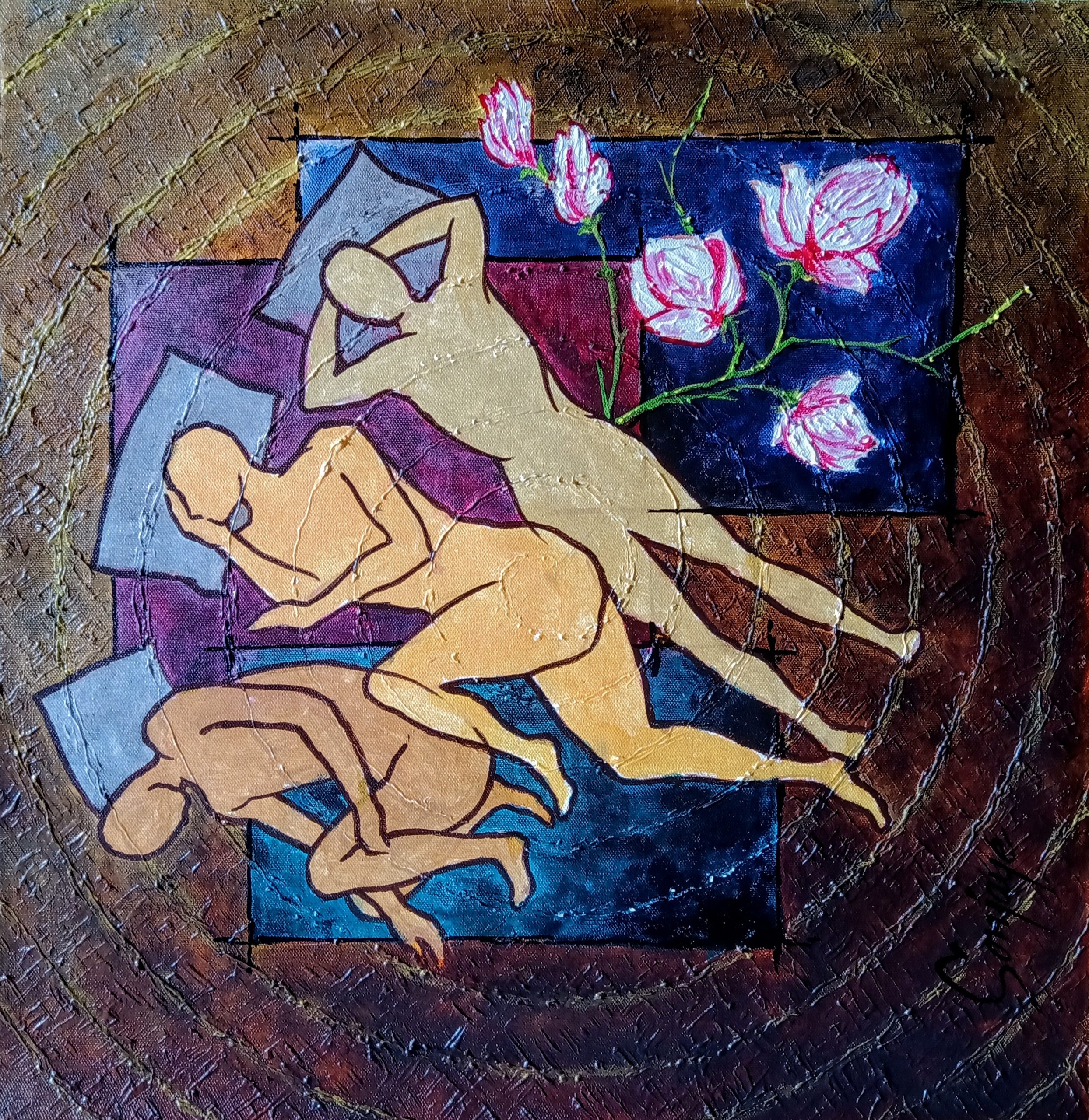 He deals with artistic perceptions about the human feelings and the different realms of life. His works explore the artistic transition from traditional to modern in vibrant colour palettes. His paintings reflect on fantasies and dreams